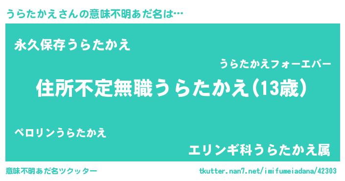 | 料理風あだ名 | 『うらたかえのカルパッチョ風』 |