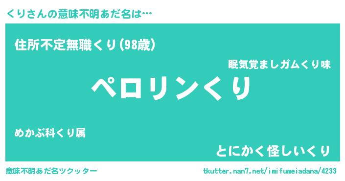 | ヘコむあだ名 | 『くりにー』『くりを』『くり(笑)』 |