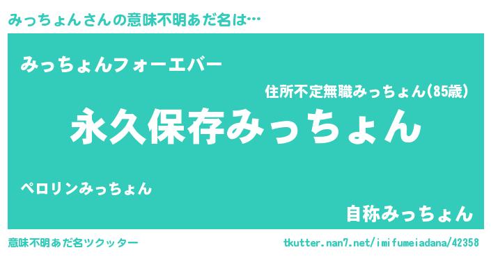 | 女子向けラノベタイトル風あだ名 | 『異世界でカフェみっちょんを開店しました。』 |