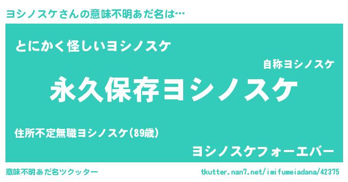 | 胡散臭い通販商品みたいなあだ名 | 『絶対に幸福をもたらす健康食品…その名も「ヨシノスケ」』 |