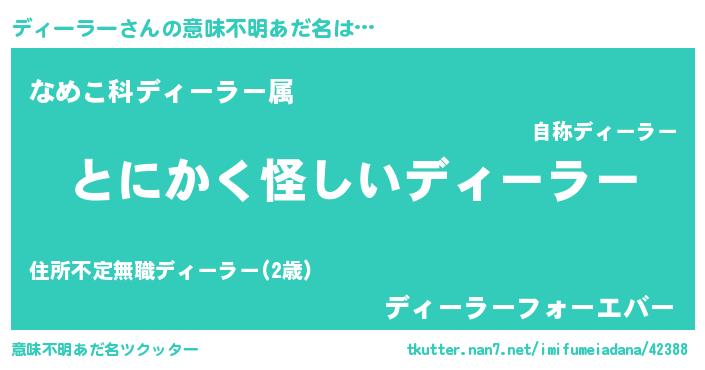 | ヒーロー風カッコイイあだ名 | 『天弓騎士ディ』『最強戦士ディーラー』 |