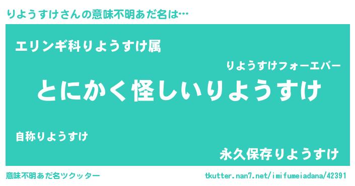 | 男性向けラノベタイトル風あだ名 | 『りようすけの嫁は女の子じゃないと思った?』 |