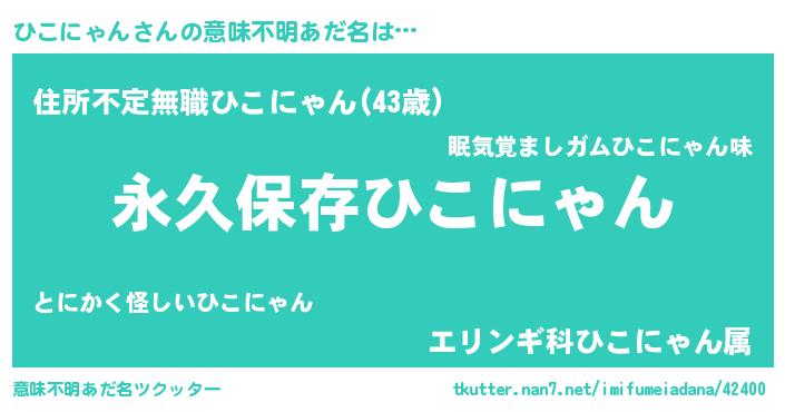 | 男性向けラノベタイトル風あだ名 | 『ひこにゃんという概念が存在しない退屈な世界 』 |