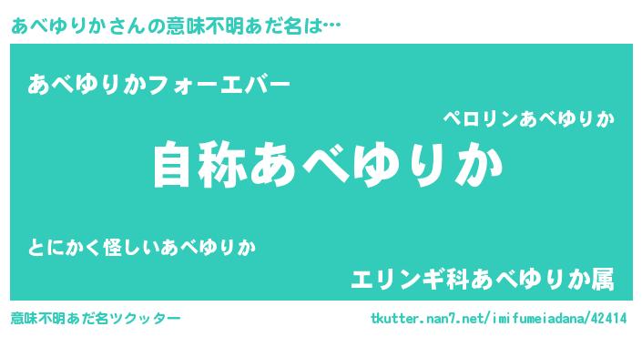 | 欧米人風あだ名 | 『ケンブリッジあべゆりか』 |