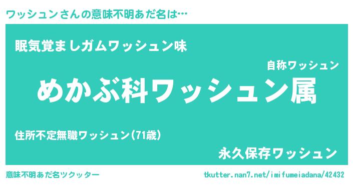 | 男性向けラノベタイトル風あだ名 | 『緋弾のワッシュン』 |