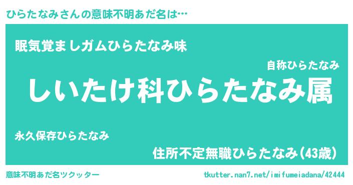 | ヘコむあだ名 | 『ひらたなみ(小並感)』『なまこ酢』 |