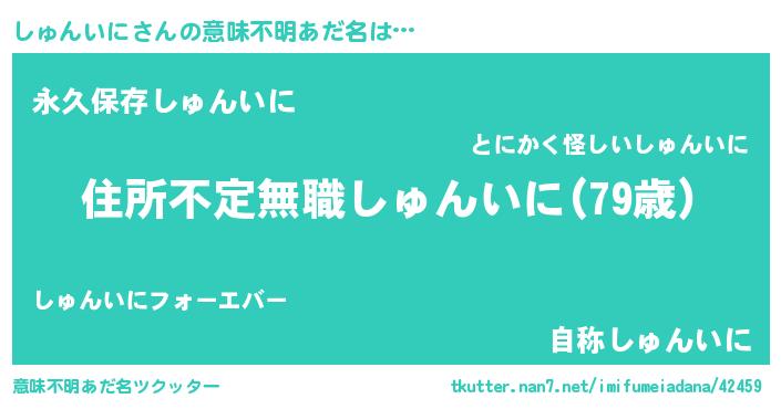 | ヘコむあだ名 | 『しゅんいに(震え声)』『しゅ太郎』 |