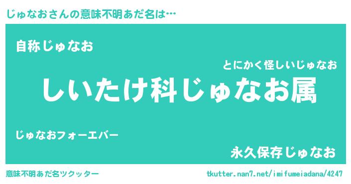 | ヘコむあだ名 | 『じゅなお(震え声)』『じゅ太郎』 |