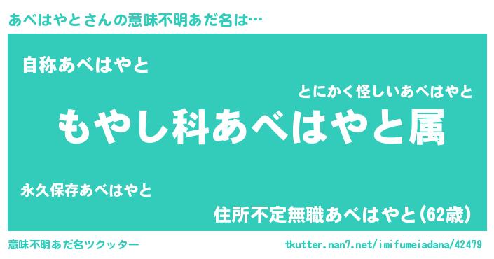 | ヘコむあだ名 | 『あべっ子』『あべはやと(震え声)』 |