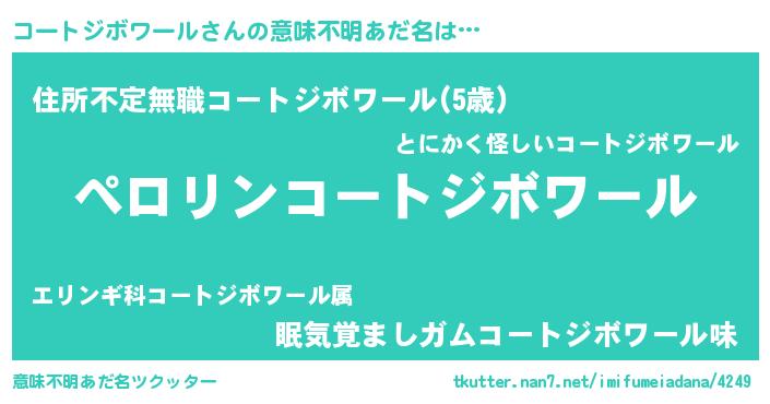 | 恥ずかしいあだ名 | 『プリティーコートジボワール』 |