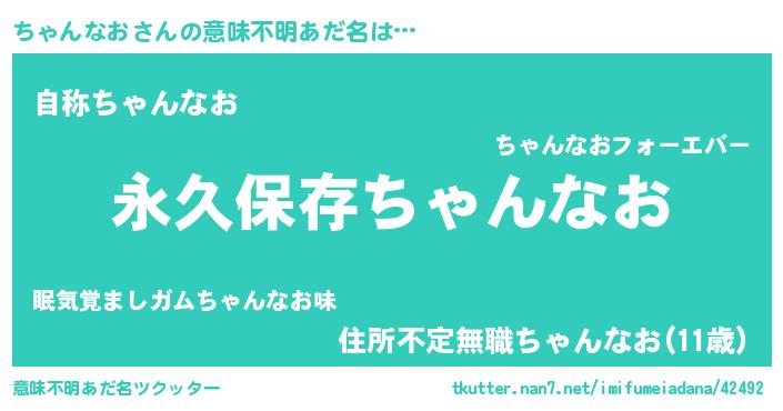 | 胡散臭い通販商品みたいなあだ名 | 『絶対に幸福をもたらす水素水…その名も「ちゃんなお」』 |