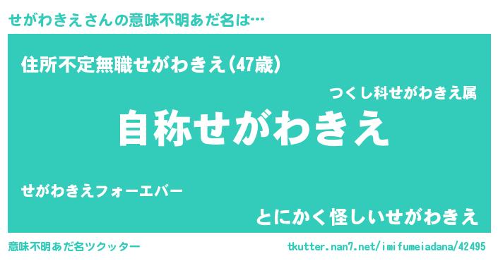 | 欧米人風あだ名 | 『せがわきえ・ステッグマイヤー』 |