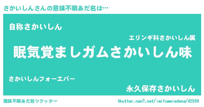 | ヒーロー風カッコイイあだ名 | 『慈愛の使者さかいしん』『暗黒騎士サカ』 |