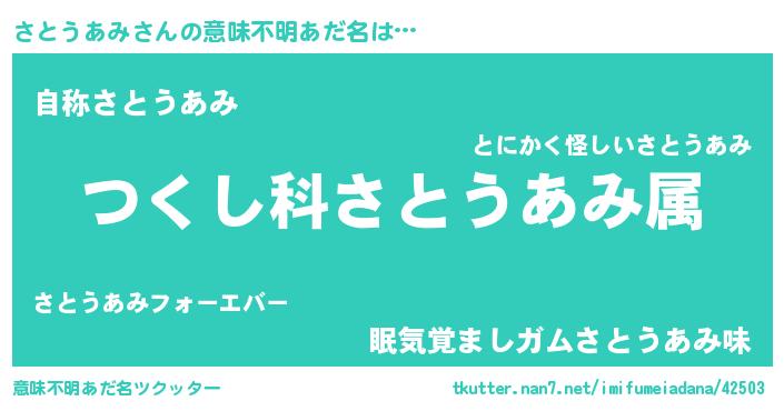 | ヒーロー風カッコイイあだ名 | 『最強戦士サトウアミ』『幻影騎士サト』 |