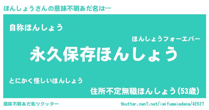 | 胡散臭い通販商品みたいなあだ名 | 『絶対に幸福をもたらす健康食品…その名も「ほんしょう」』 |