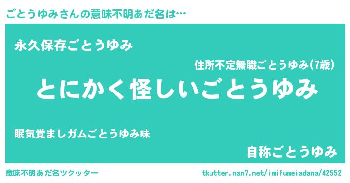 | 胡散臭い通販商品みたいなあだ名 | 『全米が絶賛したサプリメント…その名も「ごとうゆみ」』 |