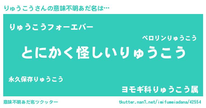 | ヒーロー風カッコイイあだ名 | 『天弓騎士リュ』『スーパーリュウコウ』 |