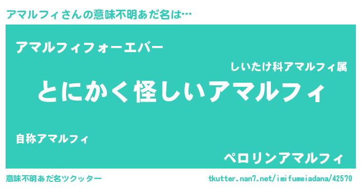 | 胡散臭い通販商品みたいなあだ名 | 『信頼と実績のサプリメント…その名も「アマルフィ」』 |