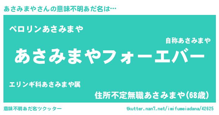| ファンタジー風あだ名 | 『エターナルアサミマヤー』『アサフェル』 |
