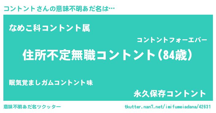 | ヘコむあだ名 | 『コントント(震え声)』『なまこ酢』 |