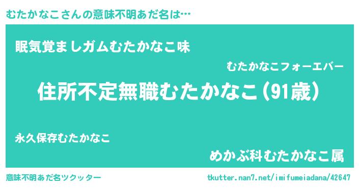 | ヒーロー風カッコイイあだ名 | 『仮面ムタダー』『慈愛の使者むたかなこ』 |