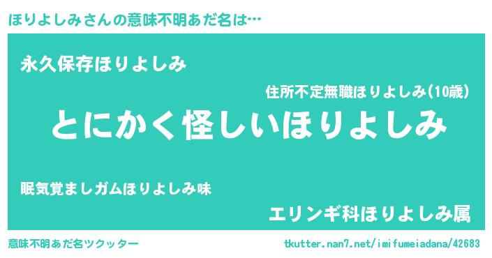 | 胡散臭い通販商品みたいなあだ名 | 『信頼と実績のペンダント…その名も「ほりよしみ」』 |