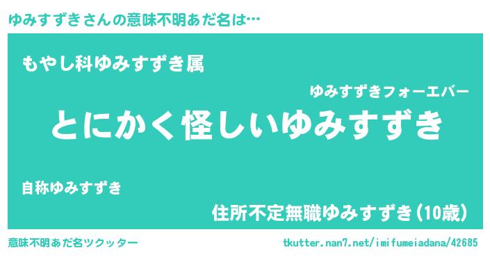 | 男性向けラノベタイトル風あだ名 | 『ダンジョンにゆみすずきを求めるのは間違っているだろうか』 |