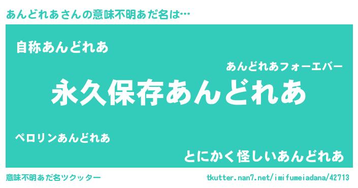 | 男性向けラノベタイトル風あだ名 | 『うちのあんどれあが世界を掌握している!』 |