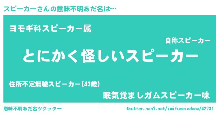 | ヒーロー風カッコイイあだ名 | 『天弓騎士スピ』『正義の使者スピーカー』 |