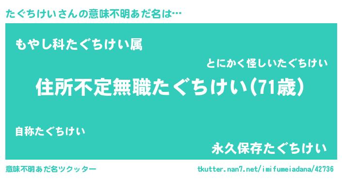 | 料理風あだ名 | 『たぐちけいのカルパッチョ風』 |