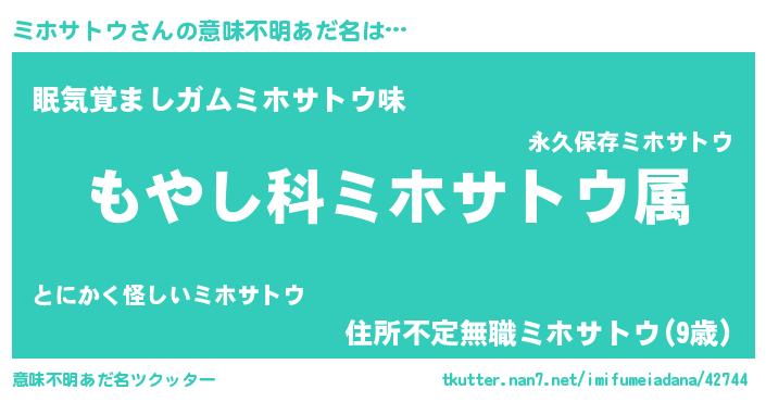 | 男性向けラノベタイトル風あだ名 | 『転生したらミホサトウだった件』 |