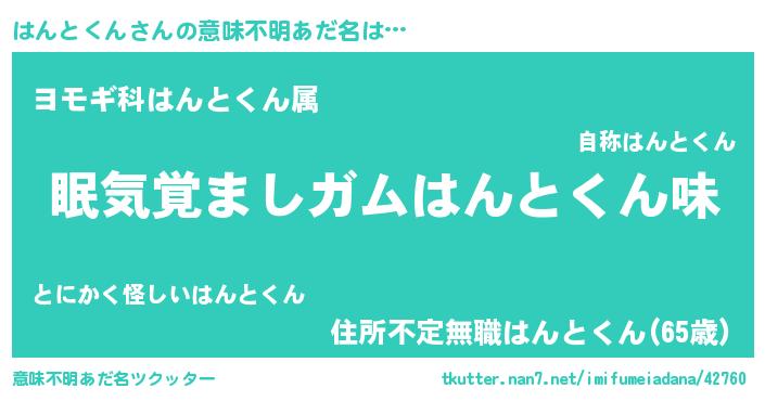 | 肩書あだ名 | 『はんとくん学校長』『はんとくん中将』 |