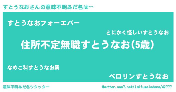 | 男性向けラノベタイトル風あだ名 | 『この素晴らしい世界にすとうなおを!』 |