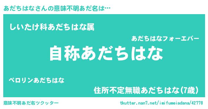 | 肩書あだ名 | 『あだちはな総統』『あだちはな中佐』 |