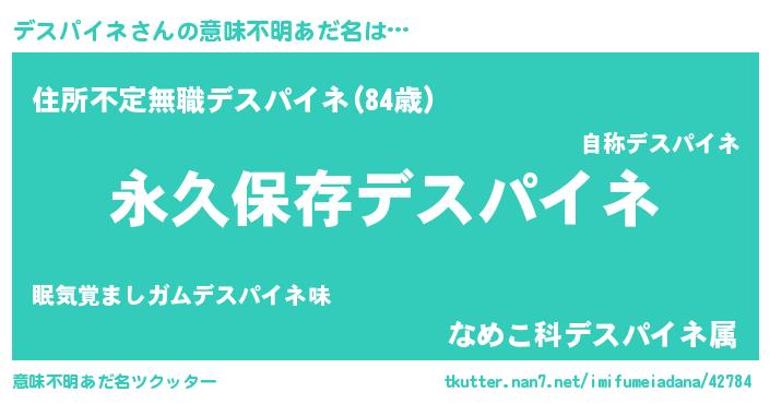 | 胡散臭い通販商品みたいなあだ名 | 『来世でも幸せになれる健康食品…その名も「デスパイネ」』 |