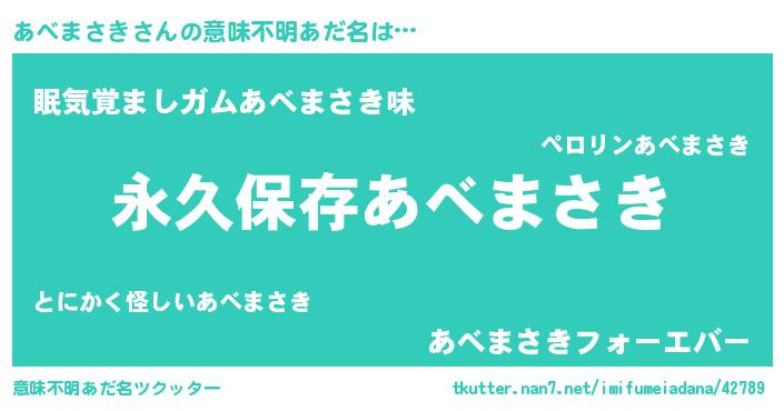 | 女子向けラノベタイトル風あだ名 | 『異世界でカフェあべまさきを開店しました。』 |