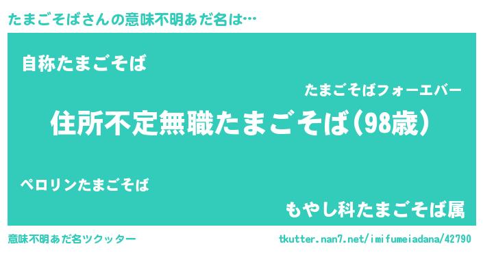 | 男性向けラノベタイトル風あだ名 | 『この素晴らしい世界にたまごそばを!』 |
