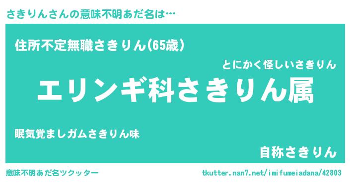 | 男性向けラノベタイトル風あだ名 | 『サキリンスレイヤー』 |
