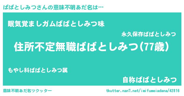 | 欧米人風あだ名 | 『ばばとしみつ・ステッグマイヤー』 |