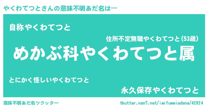 | 欧米人風あだ名 | 『アンジェラ・やくわてつと』 |