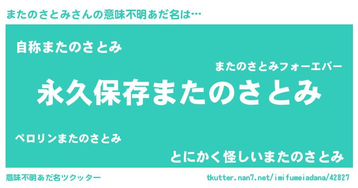 | 男性向けラノベタイトル風あだ名 | 『またのさとみという概念が存在しない退屈な世界 』 |
