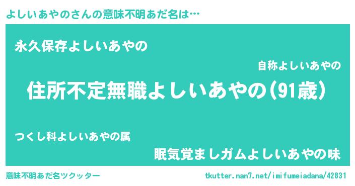 | ヘコむあだ名 | 『よしいあやの(遠い目)』『よしを』 |