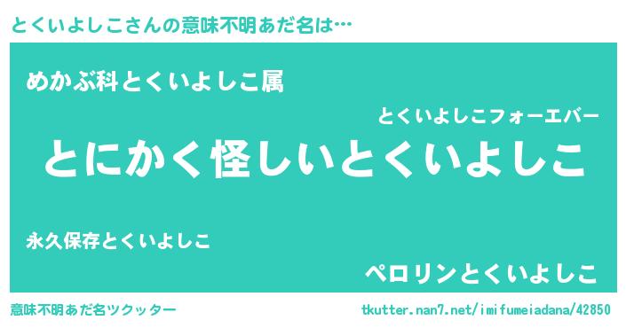 | 女子向けラノベタイトル風あだ名 | 『とくいよしこは平凡を望む』 |