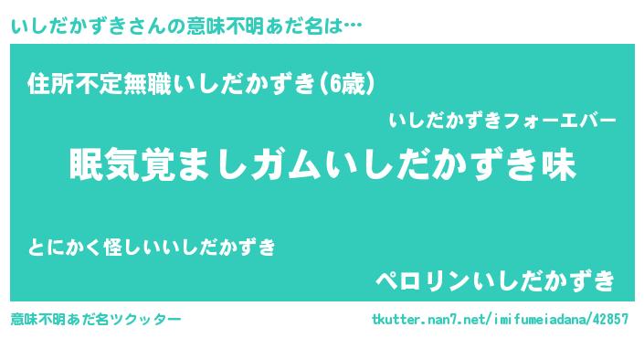 | 男性向けラノベタイトル風あだ名 | 『いしだかずきに滅ぼされるだけの簡単なお仕事です』 |