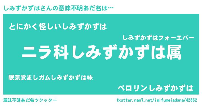 | ポケモン風あだ名 | 『シミキング』『ヒシミズカズハ』 |