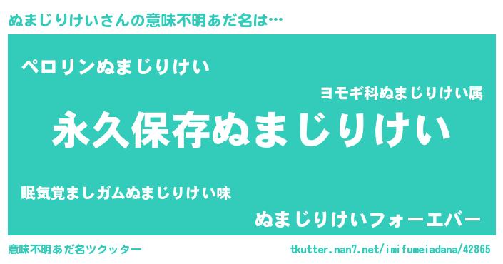 | ヘコむあだ名 | 『ぬまじりけい(遠い目)』『ぬまもー』 |