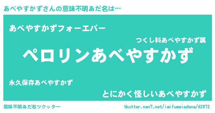 | ツイッター | あべやすかずさんのツイッターID『fukuyoka_nyan』 |