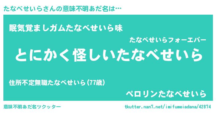 | 胡散臭い通販商品みたいなあだ名 | 『信頼と実績のサプリメント…その名も「たなべせいら」』 |