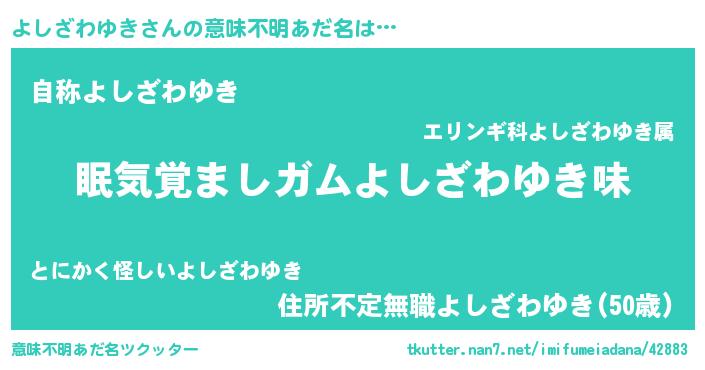 | 男性向けラノベタイトル風あだ名 | 『うちのよしざわゆきが世界を掌握している!』 |