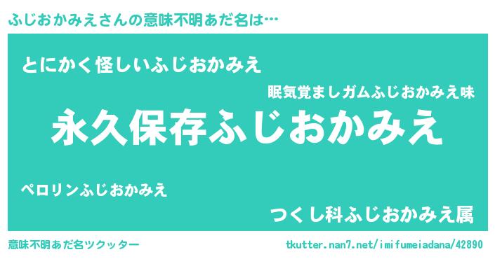 | 男性向けラノベタイトル風あだ名 | 『ふじおかみえという概念が存在しない退屈な世界 』 |